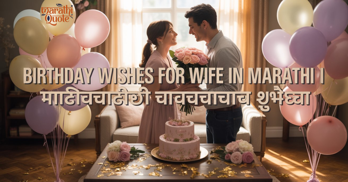 Birthday Wishes for Wife in Marathi | मराठीत पत्नीसाठी वाढदिवसाच्या शुभेच्छा हा लेख तुमच्या पत्नीच्या वाढदिवसाला खास बनवण्यासाठी तयार केला आहे. येथे तुम्हाला साधे पण अर्थपूर्ण Birthday Wishes for Wife in Marathi | मराठीत पत्नीसाठी वाढदिवसाच्या शुभेच्छा मिळतील. तुम्ही हे संदेश थेट पाठवू शकता किंवा सुंदर कार्डमध्ये लिहू शकता. प्रत्येक wish प्रेमाने भरलेला आहे आणि तिला आनंद देईल.